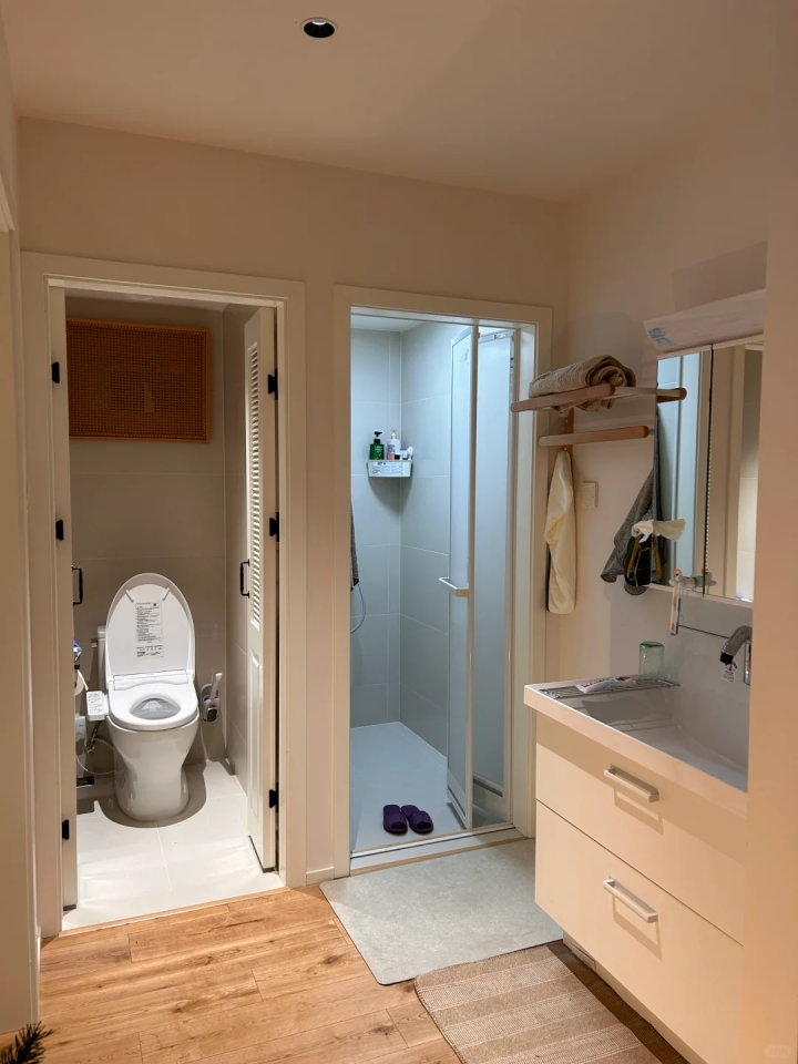 而将其打通就能够做到更好的干湿分离,卫生间内部再进行一些区域划分,这样利用率会更好一些。